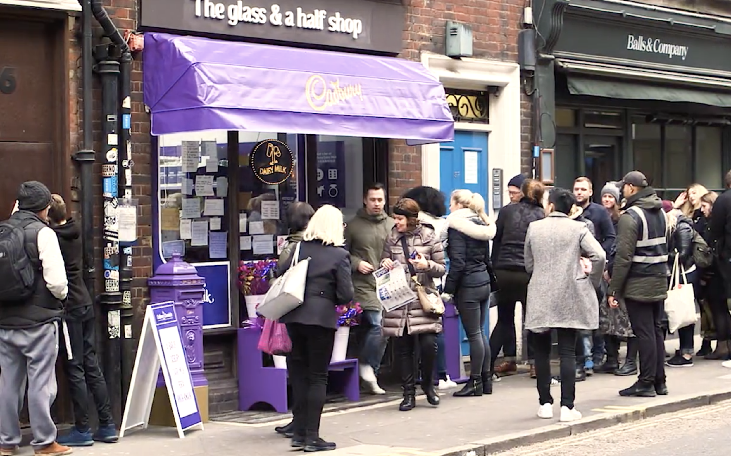 Working with the Cadbury team at VCCP, I exploded the brand’s new positioning ‘There’s a glass & a half in everyone,’ by bringing the TV advert to life. In the advert, a generous shopkeeper allows a little girl to swap a knick-knack for a bar of chocolate. We continued this generous spirit throughout the UK, by giving people the chance to swap their own knick-knack for a bar of Dairy Milk in pop-up Cadbury branded newsagents.