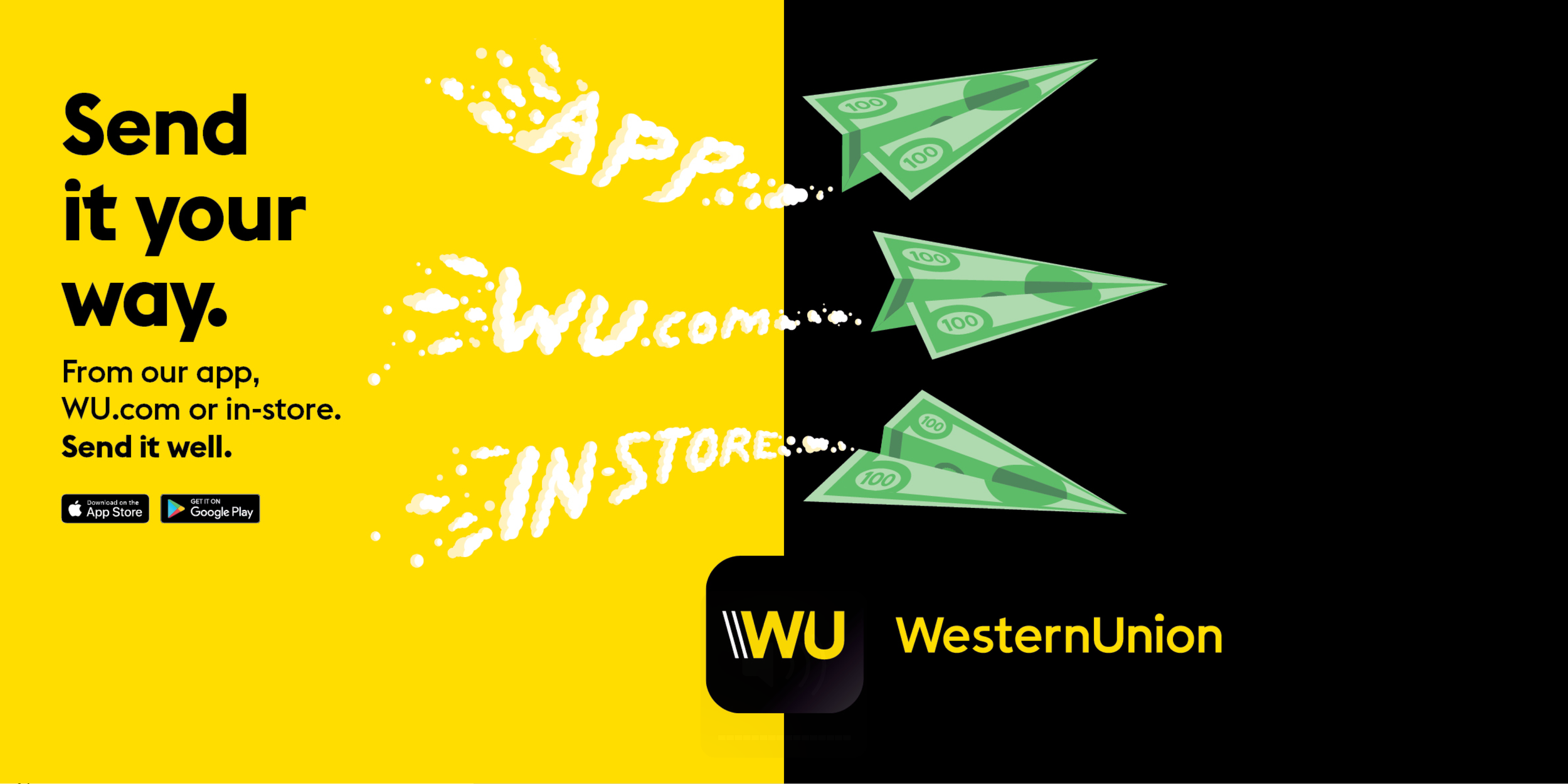 This campaign was a massive pitch win for BBH. Working with Ewan Patterson, and the rest of the WU team, Western Union was completely overhauled to look modern, dynamic, and more importantly, standout against all of the other money transfer companies in the market.